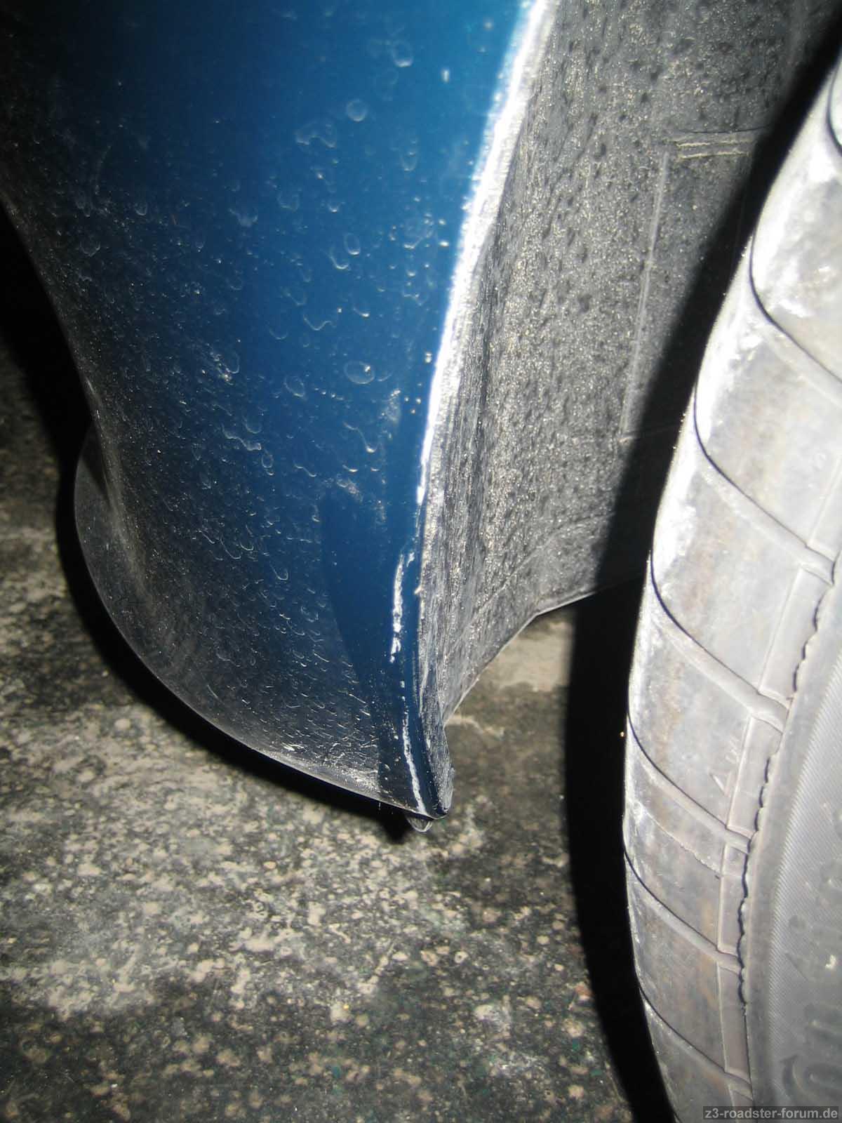 Ich habe bemerkt, dass ich vorne, am Kotflügelrand leichte Schleifspuren sind. Das schaut aus, als ob dort der Reifen beim Eischlag am Kotflügel schleift!