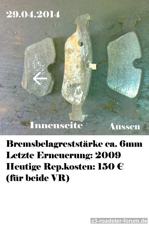 Mein Schrauber hat die "Bremsbackenerneuerungshistorie" nur bis 2009 nachrecherchieren können und sagte: "Bei dem Alter kalkulierbar" :?