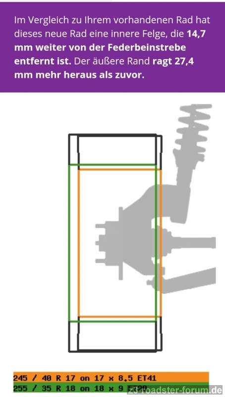 Bei 9x 18 Et 20 zu 8,5 et 35 sehe ich HA zu Va schon das , das eine et differenz ist , und das hat hat auch Auswirkungen auf die Hebelverhältnisse deines Fahrwerks , gerade mit den Breiten Ag schwingen , ich versteh das er das nicht eintragen will !