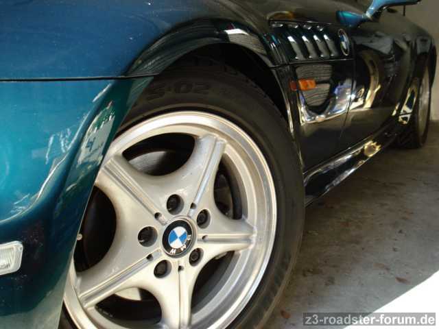 Anbei ein paar Bilder meines hinteren linken Radlaufs mit Originalbereifung (225/55*16 auf der Fünfstern-Felge) und ein Bild vom vorderen mit eingeschlagenem Rad.