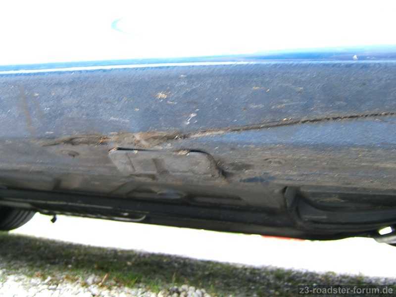 Beim näheren Betrachten trifft mich der Schlag. Ein fetter Riss im Blech des Seitenschwellers.