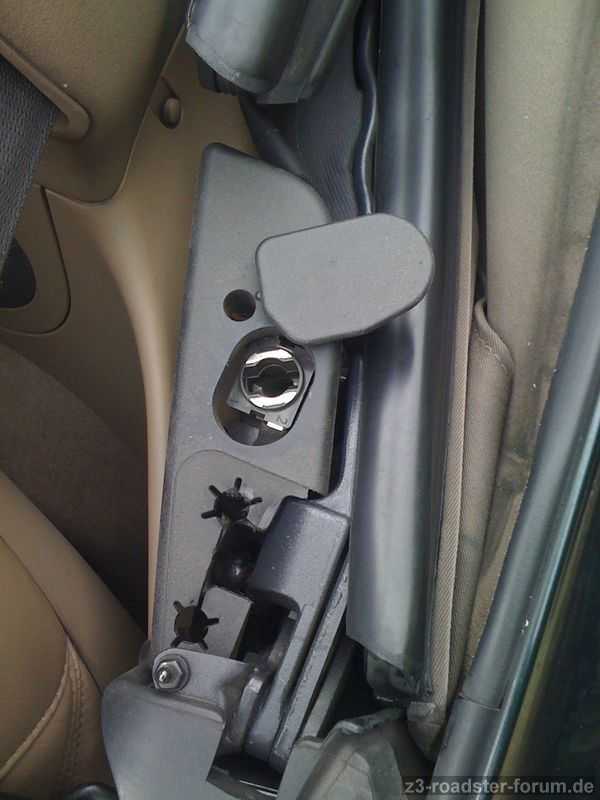 Mach mal das Verdeck auf und schau mal wegen Abdeckkappen nähe der Gurtrollen.