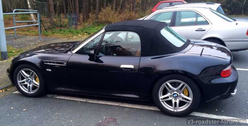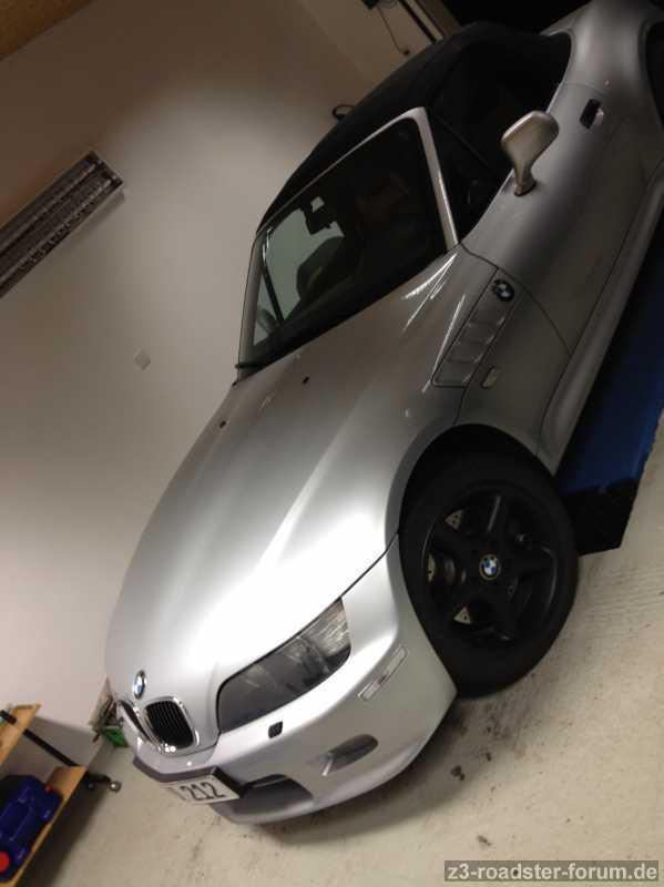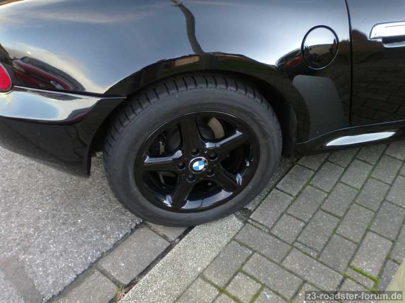 Da ich diese Stahlfelgen mit Winterreifen fürchterlich finde, habe ich originale BMW Felgen in Wagenfarbe lackieren und meine Winterreifen draufgezogen. Finde sie stehen ihm ganz gut!