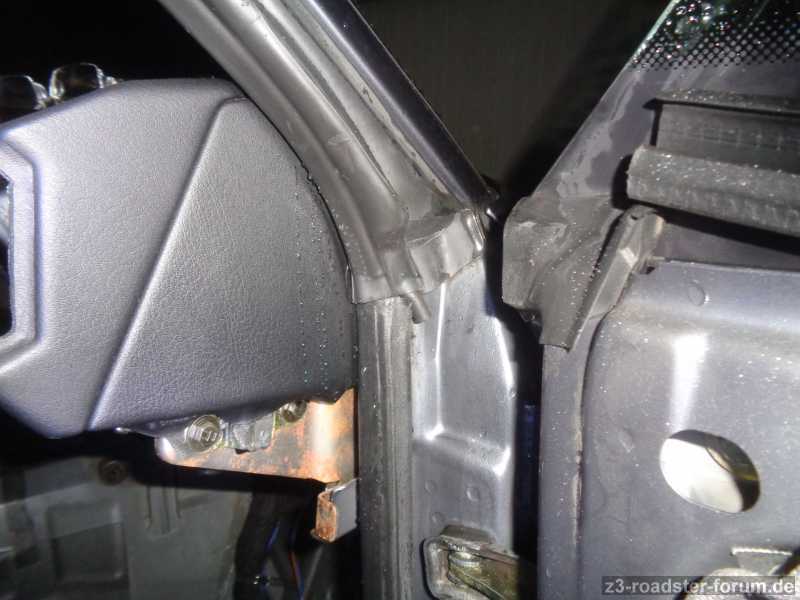 Bei meinem ist da auch das Wasser rein gelaufen. Es läuft zwischen A-Säulendichtung und Karosseriefalz rein.