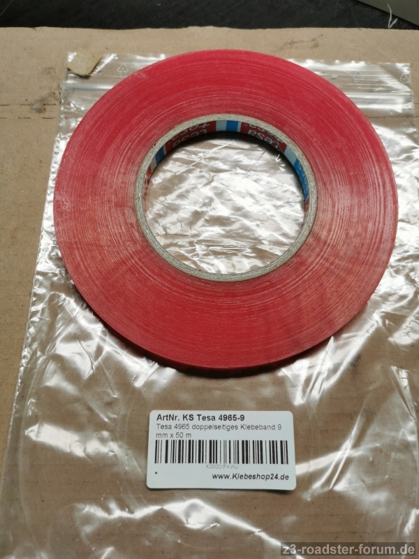 Ein Zierleisten-Klebeband habe ich an anderer Stelle zwar auch schon erfolgreich in Verbindung mit EPDM verwendet, da man sich hier aber nie sicher sein kann, empfehle ich das Tesa-Klebeband