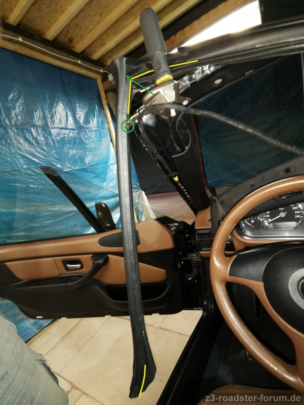 Wichtig vor der Montage der Dichtung ist dann, dass die Klammern im Klemmbereich schön straff sitzen, sie dürfen dabei aber auch nicht deformiert werden, siehe dazu auch folgenden Link: https://www.newtis.info/tisv2/a/de/e36-z3-3.0i-roa_200007/repair-manuals/51-body-equipment/51-71-gaskets-loose-body-components/8HthLMFy