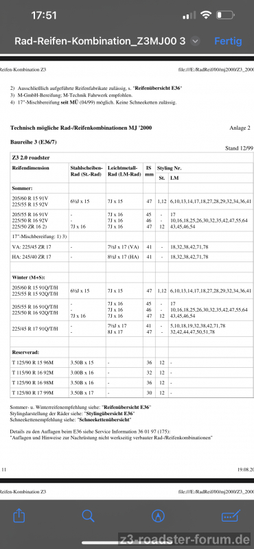 HA 8J17 mit 235er Reifen; beim Z3 in 40er Querschnitt