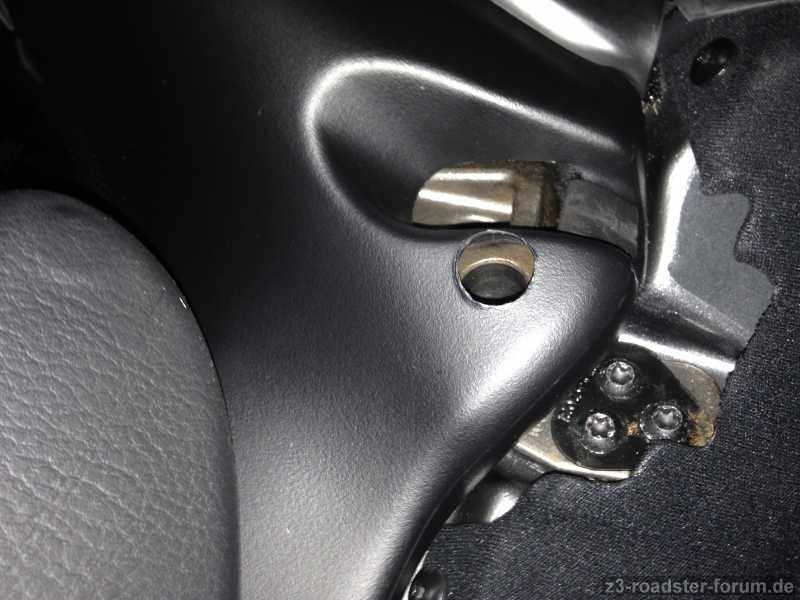 die Schrauben befinden sich unter der kleinen schwarzen Abdeckung, die sich in der Ecke am Hardtop befindet. Die Abdeckung kannst Du nach vorn Richtung Frontscheibe schieben und dann durch leichtes abklappen nach unten rausnehmen.