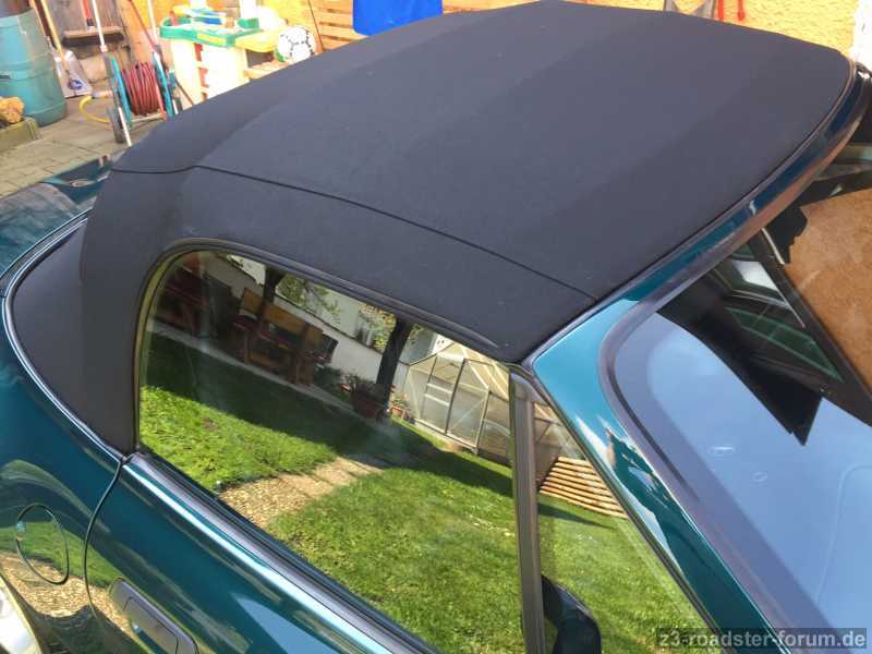 Zum Produkt...ich hatte die freie Wahl: Farbe, Fenster mit Keder oder ohne, Regenrinne oder nicht...seitliche Tasche oder nicht...ich wollte ein möglichst originales, deshalb mit Tasche, ohne Regenrinne aber mit Fensterkeder...