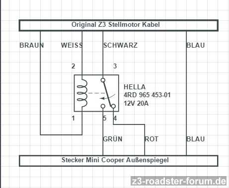 Ich habe erstmal eine einfache Variante ohne Relais gemacht,die Spiegel gehen bei Betätigung des Schalters,gleichzeitig,nach oben und nach aussen,