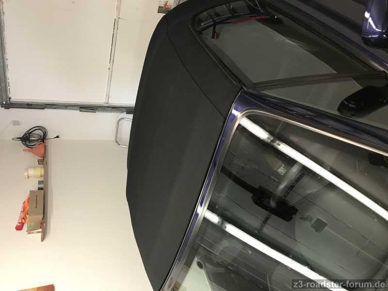 Wäre bestimmt interessant zu wissen, denn die Alte gefaltet sich im Verdeckkasten mit gut 2cm Abstand zur Rückwand und die Neue liegt, zumindest bei mir, an der Rückwand an. Das könnte, befürchte ich, frühzeitig schon die Scheibe anscheuern.
