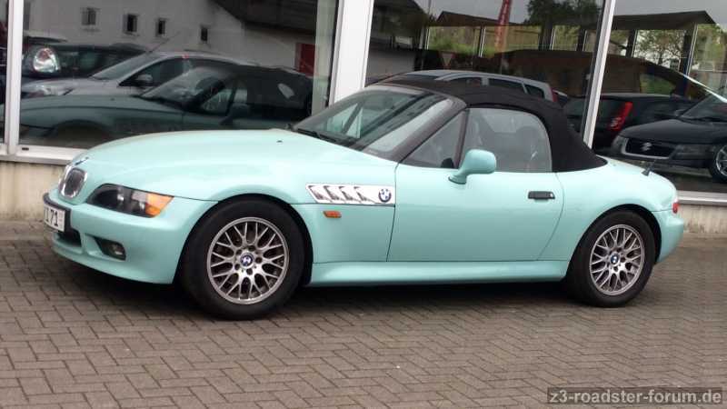 Beim Türkis von Kimi ... die Türgriffe, Scheibenrahmen, Innenausstattung und Reifen sind schwarz. Da ist es schwer eine andere Farbe aufzunehmen. Ansonsten würde ein dunkelblau gut passen. Also: Scheibenrahmen, Türgriffe und Chromkiemen entsprechend blau lackieren. Dann passt es wieder.