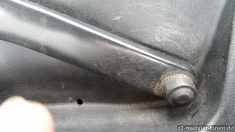 Wie man an den Kratz-Spuren in der Verkleidung sehen kann, hat offensichtlich schon jemand vor mir daran "rumgewürgt". Ich habe den Arm dann mit Rostlöser und taumelartigen Bewegungen ab bekommen.