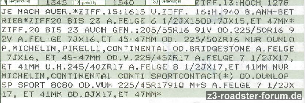 Den Rest hat die Zulassungsstelle gemacht: Die 16-Zoll-Bereifung wurde gestrichen und die 225/45R17 auf 7,5 J17 ET41 und 245/40R17 auf 8,5J17ET41 aus der Datenbank genommen.