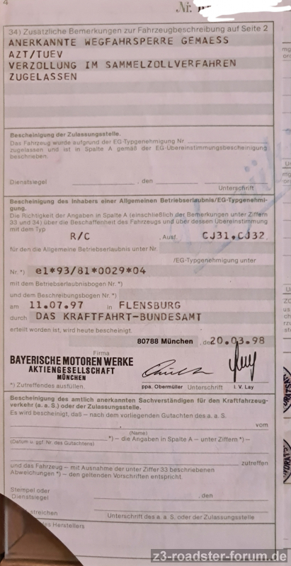 KBA wurde diese Zulassung für den Z3 nie zurückgenommen bzw. in diesem Detail geändert.