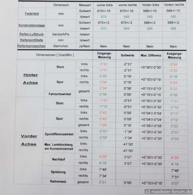 8 ) Spureinstellung VA nicht wie lt. BMW optimal mit 9`Vorspur/Seite, sondern ganz bewusst mit 11` (also durchaus noch im Rahmen der Toleranz von +/-4`), da ich festgestellt habe, daß mein Auto mit diesem Wert fast keine Spurrillenempfindlichkeit mehr hat -> hoffentlich bleibt das auch so, wenn die Reifen etwas weiter abgefahren sind, schaun wir mal.