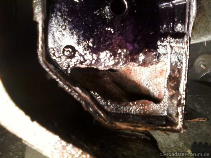 Als ich dann mit der Drahtbürste dem verrosteten unteren Teil des Schwellers zu Leibe gerückt bin hat sich das Blech in Rostbrösel aufglöst