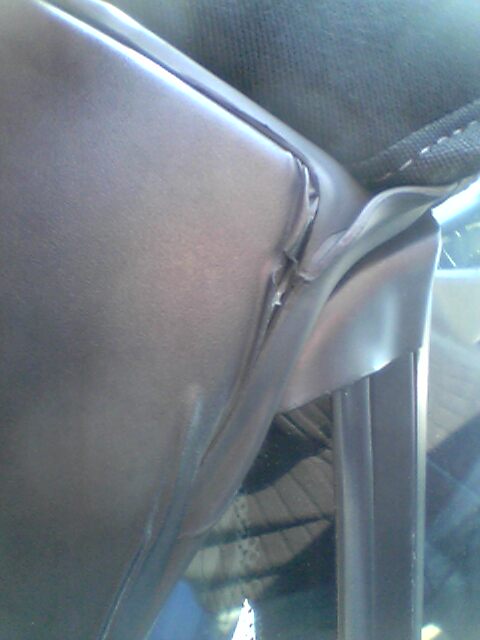 Ich habe mir gerade einen Z3 2.8 angeschaut. Baujahr 97. Zwischen A-Säule und Verdeck löst sich ein einer Stelle, genau an der oberen linken Ecke, die Folienabdeckung. (Siehe Bild)