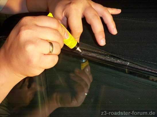 meine Frau und ich haben uns an das jedem hier bekannte Thema offene Verdecknaht am Keder der Heckscheibe herangetraut und wie ich denke mit Erfolg.