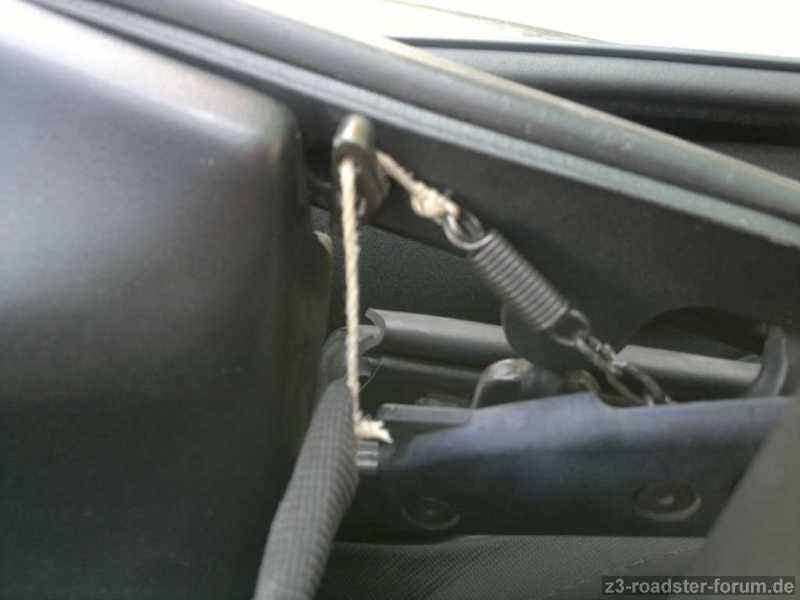 An meinem Verdeck hat sich vorne links innen ein schwarzes Band gelöst und die Spannung der Stoffes läßt nach. Kann mir jemand sagen, wo das Band befestigt werden muß? Die Schemazeichnungen des Daches sind leider keine Hilfe. Die Werkstatt hat probeweise ein Spannseil vorne links bestellt.