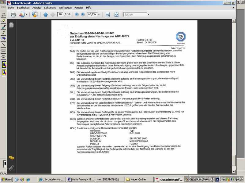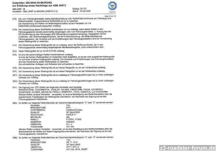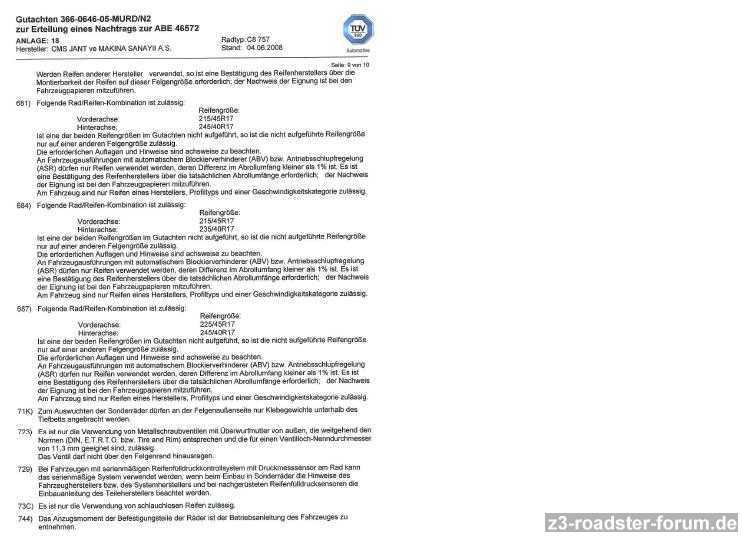 1. Darf ich die Felgen/Reifen auf meinem Z3 überhaupt fahren?