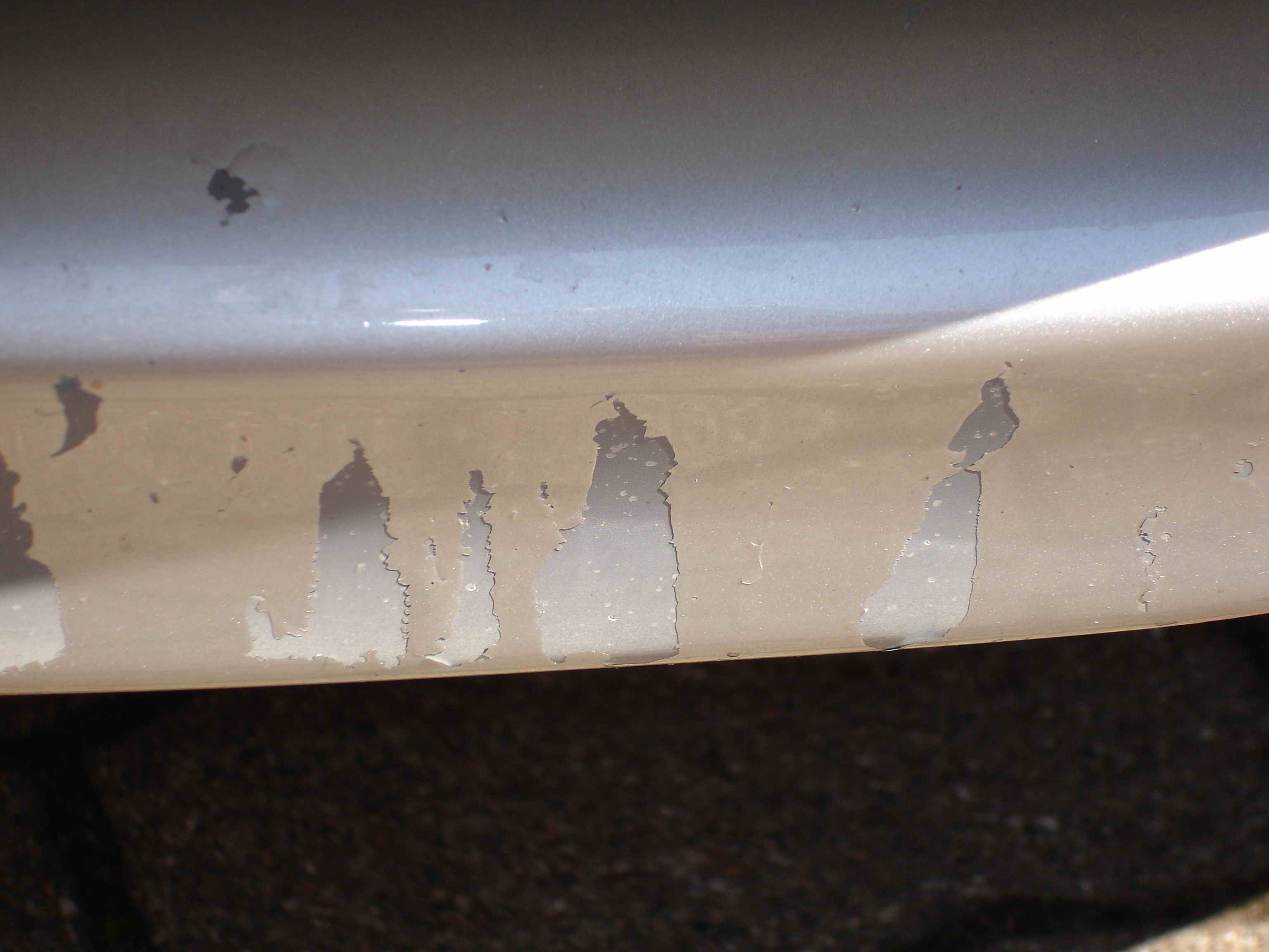 Nach dem waschen habe ich gesehen wie der Lack (silber) in 4-5 cm großen Stücken ab der Stoßstange vorne unten abgeplättert ist.