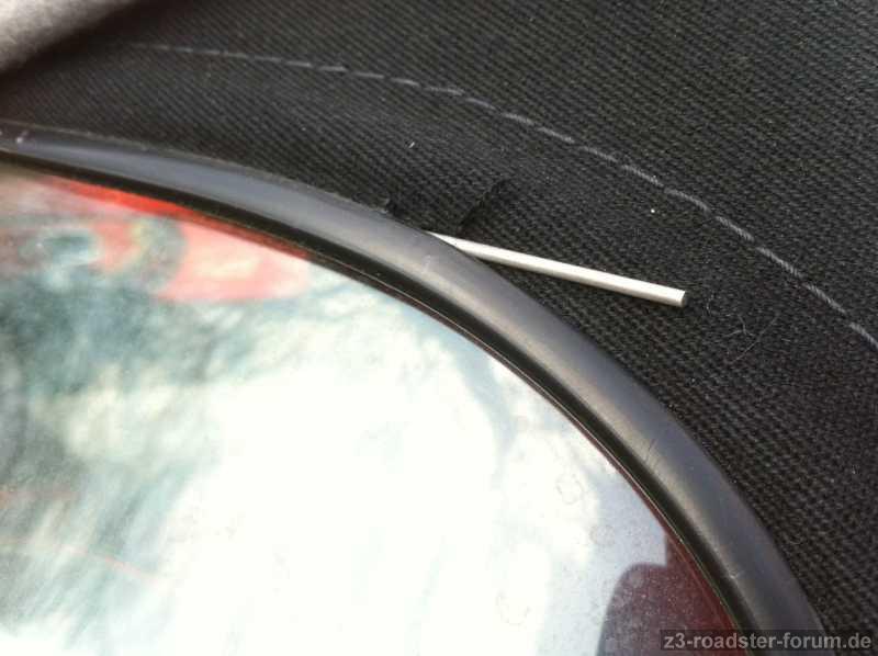 seit ein paar Tagen schaut direkt rechts oberhalb der Heckscheibe auf der Außenseite des Verdecks eine Metallstange heraus.
