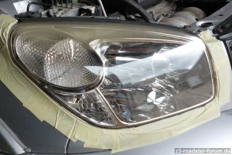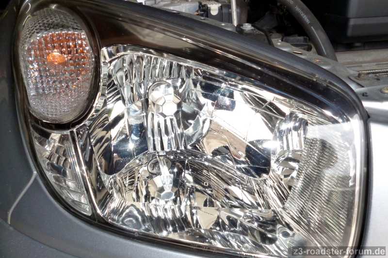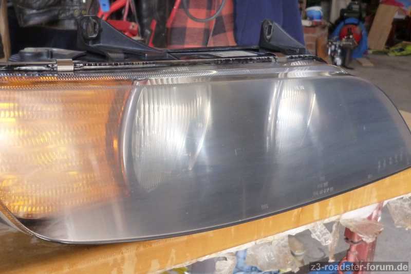 Da die Gläser der Z3-Scheinwerfer aus Kunststoff bestehen, unterliegen sie gezwungenermaßen ja dem typischen Alterungsprozess: Sie werden mit der Zeit matt, fleckig und blind. Das ist wohl in der Hauptsache darin begründet dass die UV-Schutzschicht, mit der die Gläser bei der Herstellung vergütet worden waren durch Witterungseinflüsse zerstört wird.