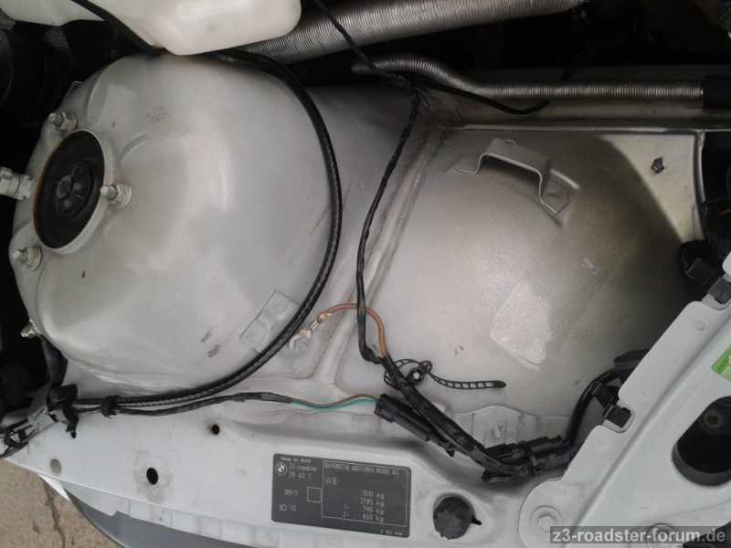 ein von BMW? extra ausgeprägter kreisrunder Plastikknubbel ganz unten am Wischwasserbehälter, der das Gewicht wohl gegen die Karosserie