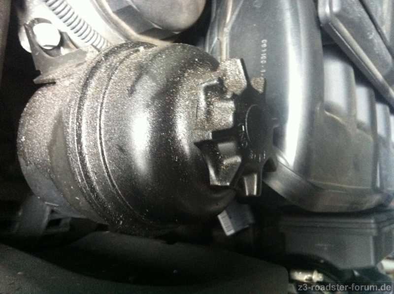 Nachdem ich gestern meinen Zetti mal wieder in der Garage besucht habe, ist mir aufgefallen, dass der Ölbehälter der Lenkhilfepumpe ziemlich ölverschmiert und dreckig ist (siehe Bild).