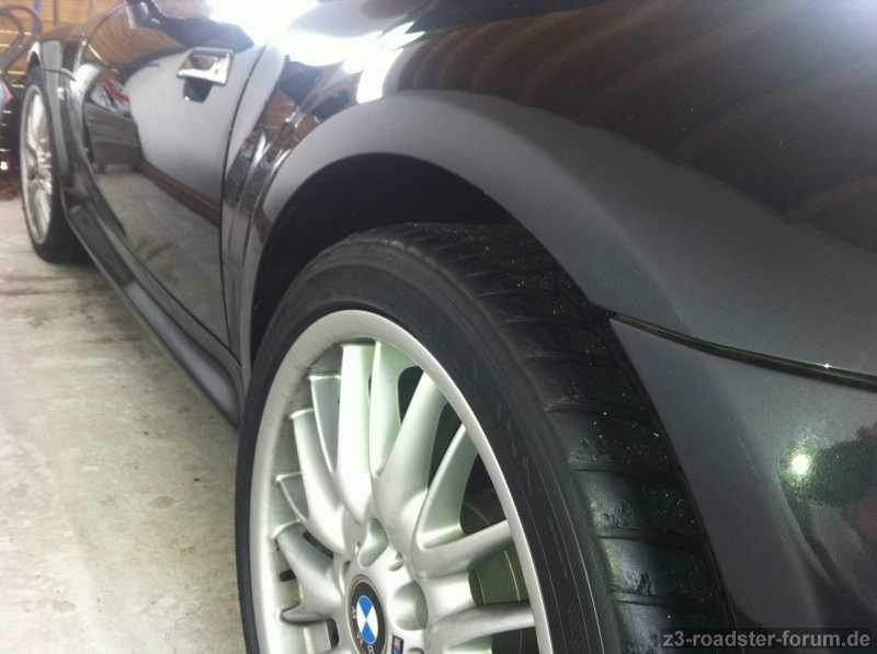 Verbaut sind 18 Zoll M-sportfelgen mit vorne 225/40 und hinten 255/35 . Dazu Distanzstücke vorne geschätzt 10 und hinten 20mm. Sieht erstmal Top aus.
