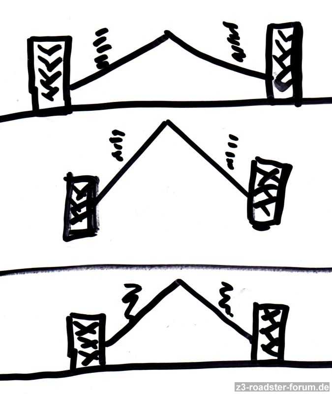 Dann bin ich 2 m vor und wieder zurück gefahren und auf einmal war er rechts wieder um 3 cm tiefer als links.