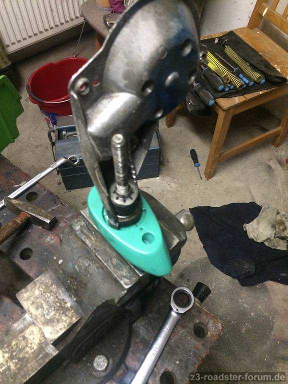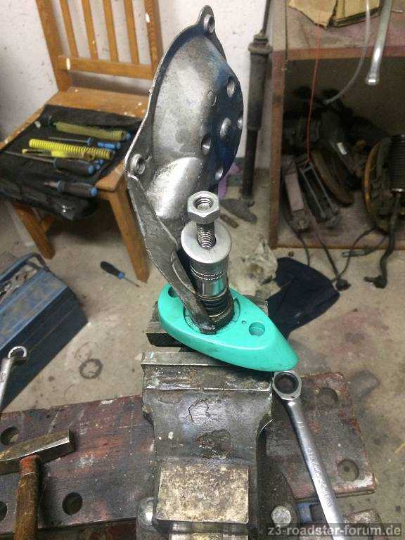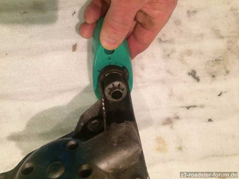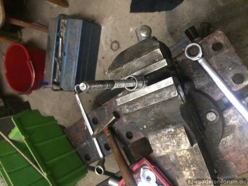 Nach "Spiiegel-Z3" setzt man eine Nuss auf den Blockring und schlägt mit einem Hammer drauf bis der Ring in die Nut an der Achse einrastet.