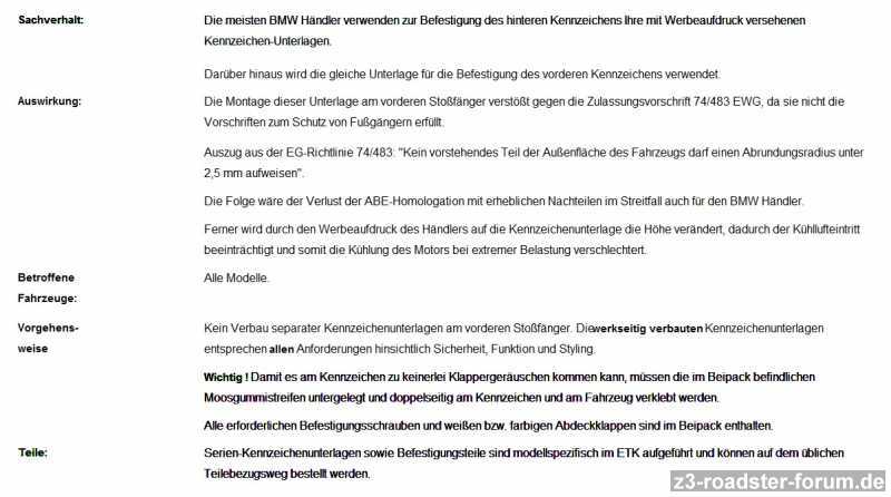 meiner neuer Zetti hat vorne keinen Kennzeichenhalter montiert. Damit meine ich nicht die Plastikeinfassung des Kennzeichens, sondern diese Unterlage auf der selbiges montiert ist: