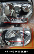 Oben ein RHD Scheinwerfer ohne Schutzscheibe. Unten ein LHD Scheinwerfer.
