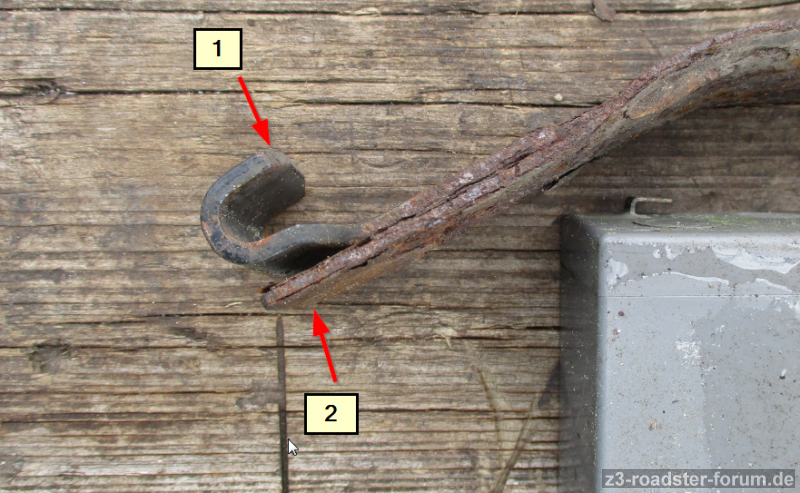 Zum problemlosen entfernen bei eingebauter Achse müsste die Lasche "1" oder "2" kürzer ausgeführt sein. Bei Mache Z3 wird das eventuell auch 1-2mm kürzer sein dann geht das auch zum aushängen.