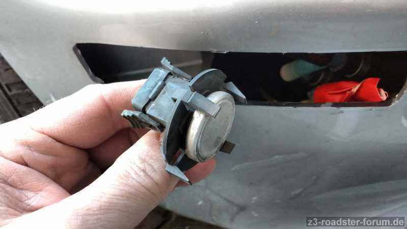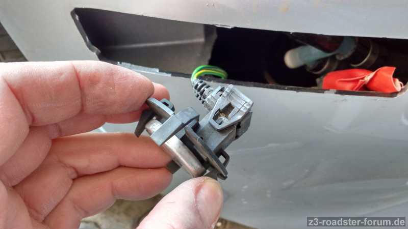 Leider hat es die Seitenmarkierungsleuchte vorne rechts zerbröselt. Als ich diese aus dem Schlitz heraus angelte fand ich einen Sensor an einem Kabel lose herum baumelnd. Was ist dies für ein Teil und wo gehört es hin? Wie kann ich es dort hin bringen bzw. einklipsen? Oder kann es einfach weiter herum baumeln? Es ist ein Z3 Baujahr 07/2001 mit einem US-Spoiler.