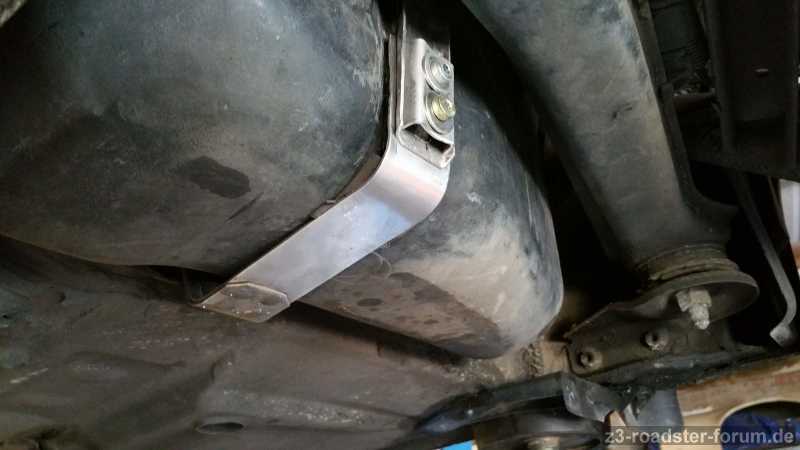 Mit einer kleinen Modifikation ist die Montage der Tankbänder ist auch ohne Ausbau des Achsträgers möglich.