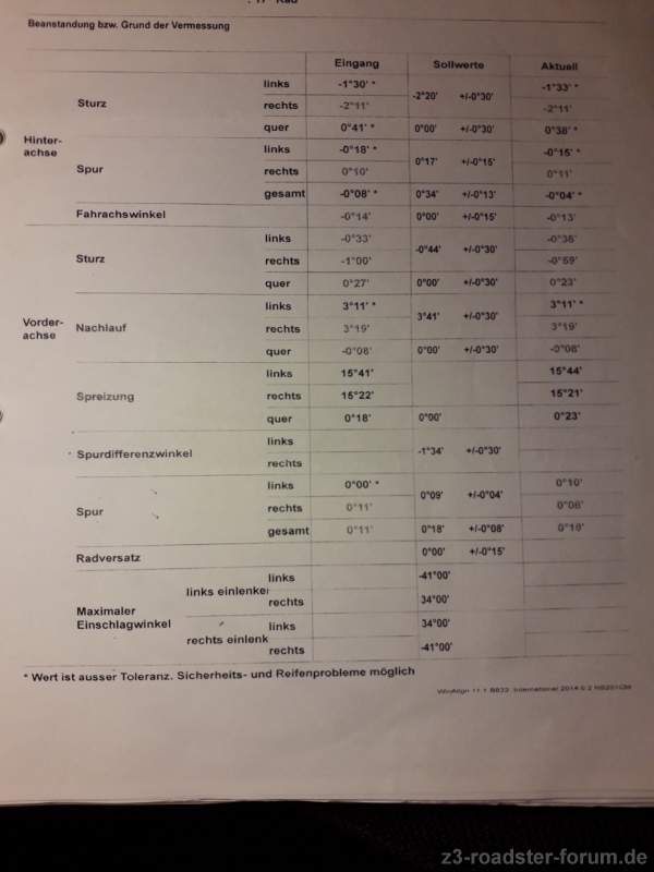 Habe vor einiger Zeit beim ADAC eine Achsvermessung vornehmen lassen und dieses Messprotokoll erhalten. Erklären konnte mir der ADAC-Mensch es leider nicht...