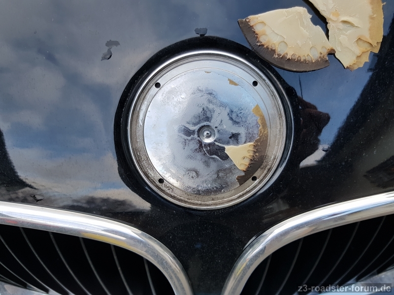 Nun war ich wohl doch ein bisschen zu schnell unterwegs und mir ist mein BMW Emblem an der Motorhaube abgeflogen.