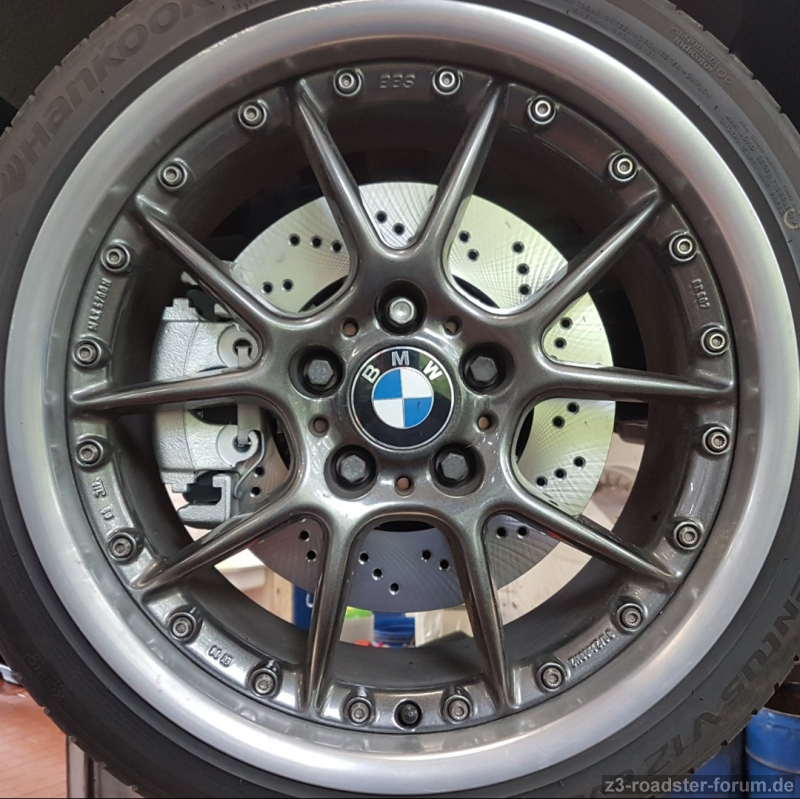 Auslöser und Ausgangspunkt der Umbaumaßnahmen an der Bremsanlage war, dass das Fahrzeug später eine Leistungssteigerung, entweder per Kompressor oder durch Einbau eines S50B52- oder Alpina B3(S)-Motors, erhalten wird. Final entschied ich mich für einen Rotex-Kompressor, der mit umfangreicher Hardware-Änderung an der Ansaug- wie Abgasanlage die Leistungsdaten des Z3M übertroffen hat. Daneben wurde als Zweites die Reparaturfreundlichkeit durch einen BMW-Fachbetrieb anvisiert; alle Teile mussten aus einer Hand und damit leicht und schnell zu beschaffen und zu wechseln sein.