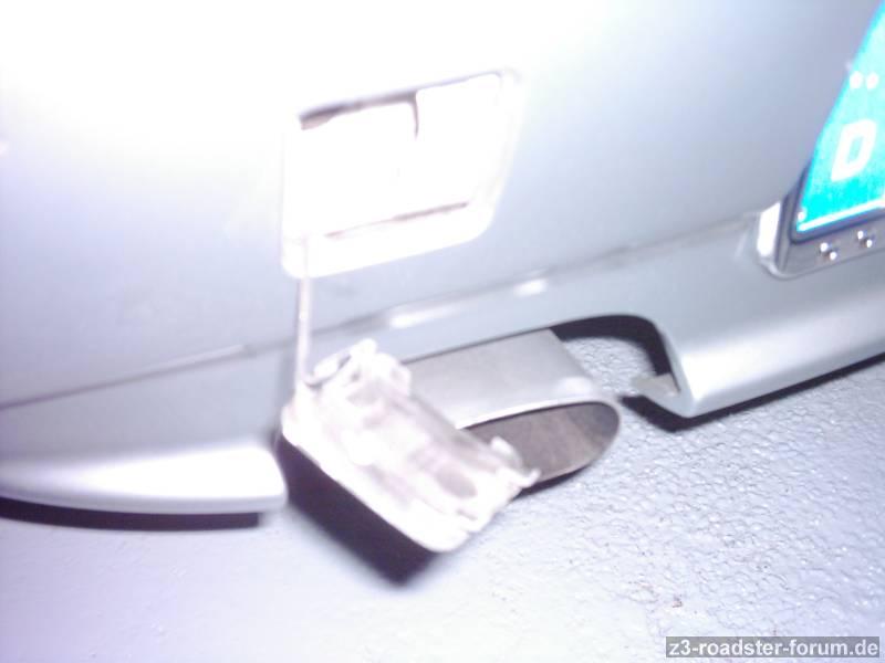 hallo zusammen, hätte da mal ne frage und denke ihr könnt mir sicher weiterhelfen.in der hinteren stoßstange links befindet sich die abdeckkappe für die abschleppöse.hab gestern bemerkt das diese klappe nach unten richtung auspuff etwas vorsteht und beim leichten antippen fiel die klappe heraus!kann allerdings auch keine "nase",weder an der klappe noch an der stoßstange erkennen,wodurch dieses teil arretiert wird.auf der unlackierten rückseite befindet sich so ne kleine führung,allerdings ohne einen riegel o.ä.