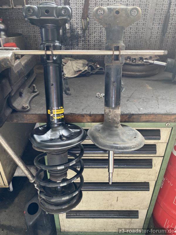 Das Auto sollte ja im Zuge des Frühlingscheck neue Stoßdämpfer bekommen .Nach einigem hin und her habe ich Monroe Dämpfer bestellt ,die auch laut Teilenummer passen .Als diese eingebaut waren schlief der Reifen am Teller ,da dieser ca 1 cm tiefer angebracht ist als bei Sachs .