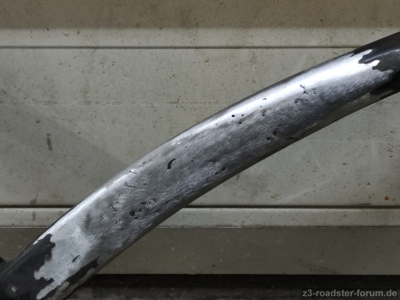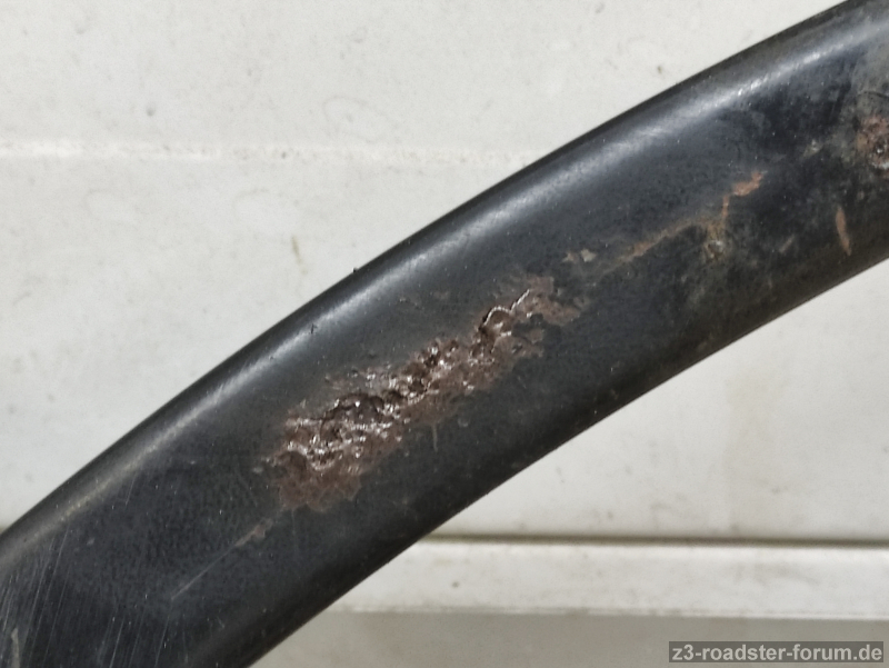 Bei näherer Betrachtung sieht es so aus als ob das Material aufgeplatzt ist und erst danach zu rosten begann.