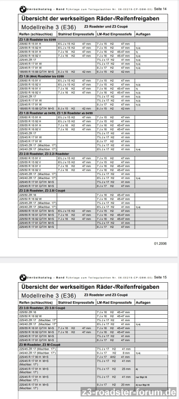 Ich fahre den Z3 (FL) mit 8x17 ET47, BMW Styling 42 zweiteilig, an der VA und HA.