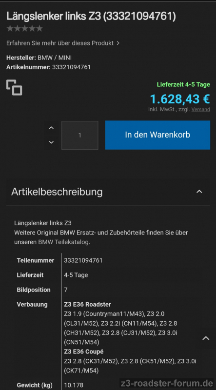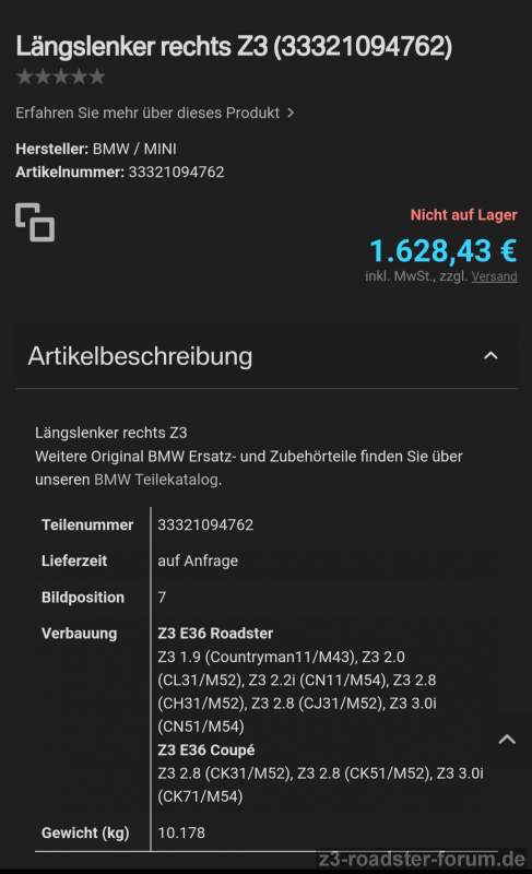 Um durch Schweissen einen solchen Längslenker zu reparieren (Rost, kleines Loch) ist angeblich eine Zustimmung von BMW nötig. Kennt sich da einer aus?