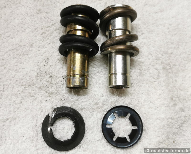 Der grundlegende Aufbau ist gleich. Das Skelett ist mit einem Bolzen mit Feder und einem Sicherungsring auf der Gegenseite drehbar auf dem Fuß befestigt. Dabei rastet das Skelett in Normalstellung in drei Nuten ein. Daher lässt er sich auch nicht so einfach drehen/einklappen, wenn die beiden Teile den Bund fürs Leben (Korrosion) eingegangen sind. Der Spiegel muss gegen den Druck der Feder etwas herausgezogen, und dann gedreht werden.