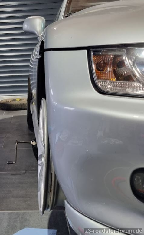 Auf der linken vorderen Seite ist bereits der äusserste Rand des inneren Kunststoffkotflügels leicht durchgeschliffen.