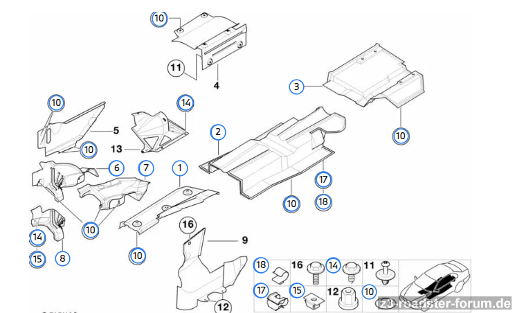 ich bin dabei die Wärmeisolierung neu zu bestellen. Vorne beim Motorträger sind die drei Teile:
