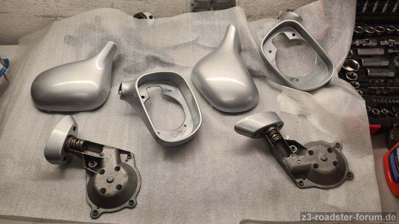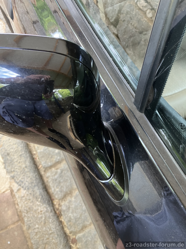 unser schöner, "neuer", originaler, Z3 hatte leider auch die Seitenspiegel mit dem aufgezogenen Lack durch Korrosion.